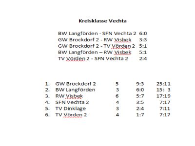 Weil Dinklage den Spieltag abgesagt hatte, spielten wir die ausgefallene Partie gegen Langförden vom 1. Spieltag. Michael Otten, die 1 von Langförden, hatte am Anfang Probleme mit Bodo, doch durch kleine Serien in den jeweiligen Sätzen, siegte er dann doch verdient. Er ist schon eine Klasse für sich. Das 2. HD von Christian P. ging nach ärgerlichen Verlust des 1. Satzes dann deutlich an Langförden.