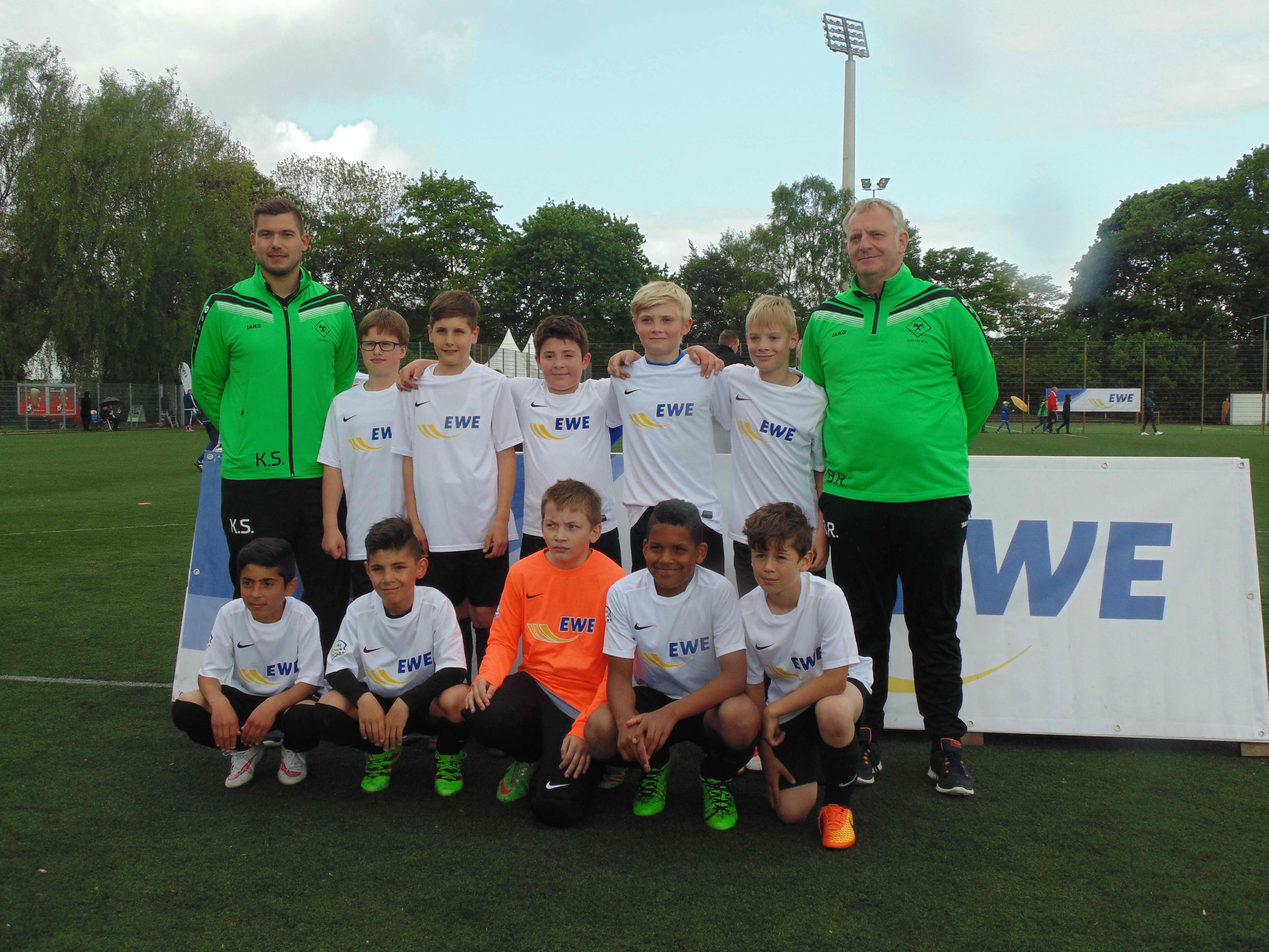 Fußball - Unsere 1. E-Jugend gewinnt in einem packenden Finale gegen den FC Nordenham mit 4:3 im Neunmeterschießen. Das Finale wurde im Bremer Weserstadion direkt vor der Bundesligapartie Werder Bremen - Eintracht Frankfurt ausgetragen.