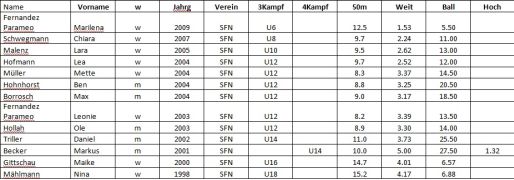 Der 13 jährige Markus Becker war am Sonntag in Top Form. Im Vierkampf legte er gleich im Weitsprung eine Weite von 5,00m vor (neue Bestleistung) die nur vom Dammer Finn Stuckenberg 14 Jahre mit 5,27m überboten wurde. Die 75m Sprint lief Markus in 10,0 sec. (auch dies ist neue Bestleistung).
