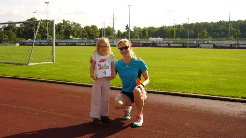 Leonie Fernandez Parameo und Mette Müller (beideU12) lieferten sich ein Kopf an Kopf Rennen über 50m Sprint, dabei konnte sich Leonie (8,2 sec) mit eine Zehntel sec. vor Mette (8,3 sec) durchsetzen