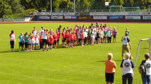 Alle Teilnehmer sammeln sich für die Einteilung in die Gruppen